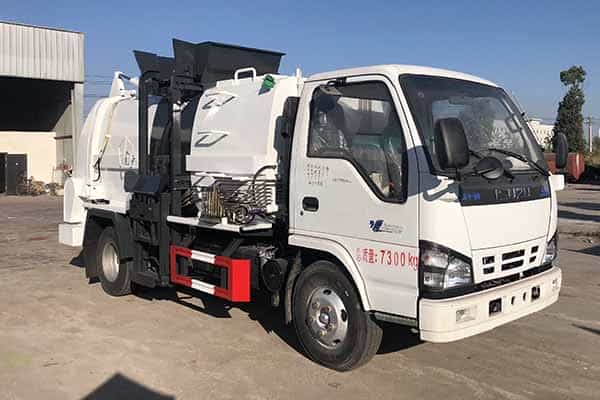 5、 垃圾压缩,固液分离功能:本产品在收集的过程中就可以对泔水进行固体物与油、水的分离,并对垃圾进行压缩,实现装载的最大化。垃圾厢内设有前后移动的推板,由四级伸缩油缸推动,推板四周装有密封条。操纵开关,推板便开始对厢内泔水进行压缩,油、水等液体便通过厢体底下的过滤网进入厢体下的沉淀水箱,实现固、液分离。