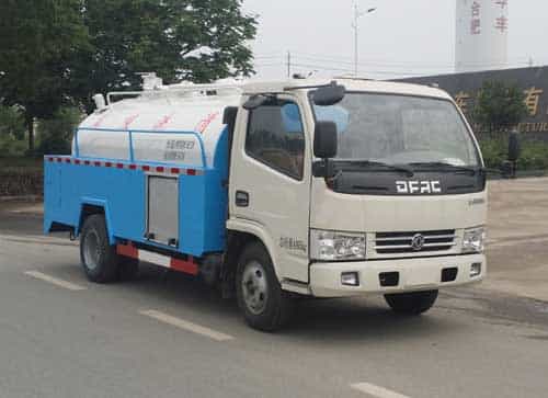选装前面罩以及前雾灯。选装外观。车辆颜色可选,文字喷涂位置可变化。罐体外形尺寸为: 罐体外形尺寸(长壮ぶ嶙短轴)(mm):3500?850?350,3200?900?400。其中罐体后部1650mm为污水罐(罐体长度为3200mm时污水罐长度为1450mm)。清水罐前部1000mm为半截面结构,下部半截面为高压泵安装位置。污水罐:运输介质:液态污物,密度900千克/每立方米,载质量2600kg,罐体有效容积3.0立方米。清水罐:运输介质:水,密度1000千克/每立方米,载质量2600kg,罐体有效容积2.6立方米。侧防护采用冷弯型钢/Q235-A,螺栓连接(选装裙边结构)。后防护与车辆结构为一体,车辆后部离地高度480mm。ABS厂家及型号:襄阳东风隆诚机械有限责任公司/ABS/ASR-24V-4S/4M.。清洗和吸污功能不同时使用,两罐不能同时装载。车辆长/轴距/前悬/后悬的对应关系为:5980/3308/1040/1632,5660/2800/1040/1820.